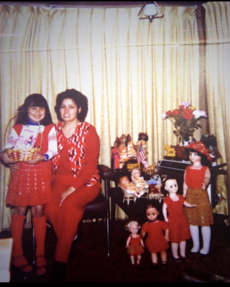 This is my favorite picture of us, of all of us, of my childhood in the U.S. because it says so so much. About the decade in which it was taken, the luxuries we had or didn’t have, but more importantly about the unity in our home – we were all together in our crochet garments – smiling faces with all the love we needed me and my dolls, one even has a hat my mom thought of everything. There we were making something where there was nothing. I wanted clothes for my dolls and I got them but I got so much more- that knowledge of how to crochet yes, but also that knowledge that money didn’t matter cuando te las ingenias- when you ingenious it.